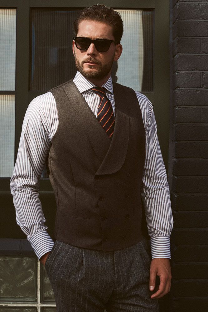 Firstly, let’s consider colour. The Charcoal Grey is a sound investment for your first suit. This is a no-questions-asked business staple. You can wear a grey suit with a blue shirt and dark brown shoes for business. But a charcoal suit will look equally good in the evenings when teamed with a white shirt and black shoes.