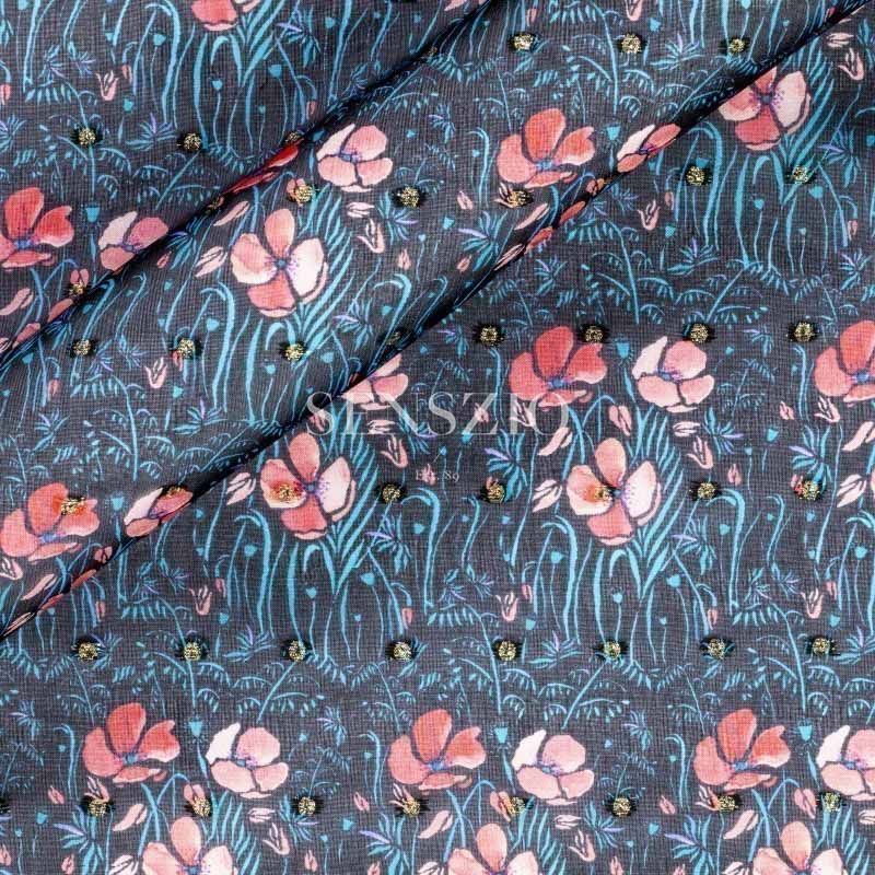 Colour: Dark Blue, Ivory, Coral, Pink & Silver Lurex